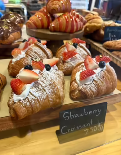A buttery, flaky pastry filled with luscious strawberry cream and rich Bavarian vanilla custard. Every bite is a perfect balance of sweetness and smooth, creamy indulgence — a treat that melts in your mouth and brightens your day.