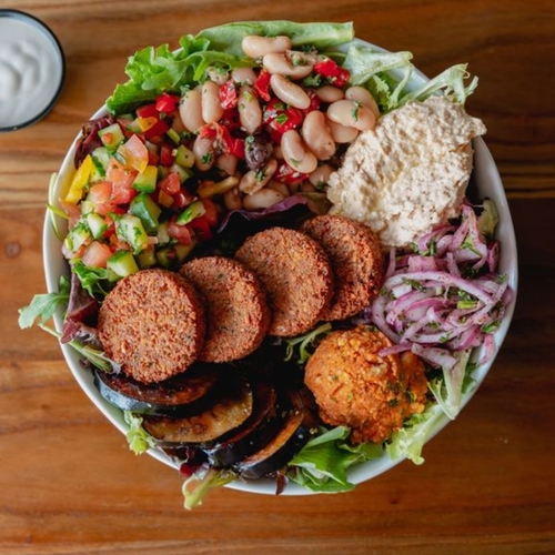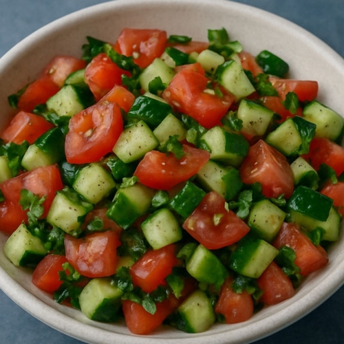 Fresh chopped tomato-cucumber salad with parsley and mixtures of pomegranate and lemon lime dressing.