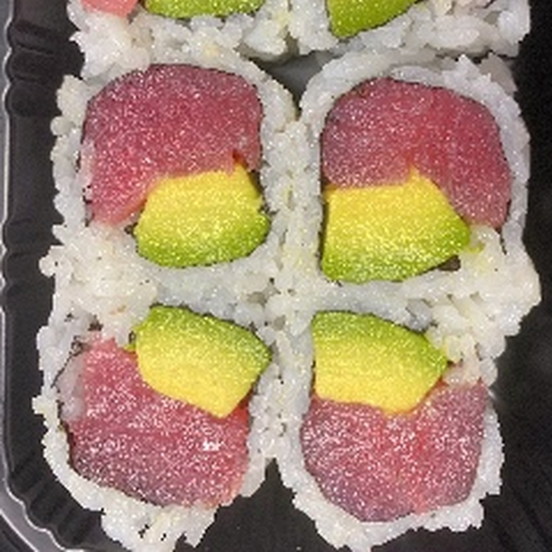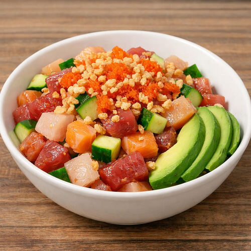 Tuna, salmon, yellow tail, tobiko, cucumber, avocado, crunch, ginger wasabi sauce.
