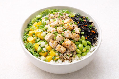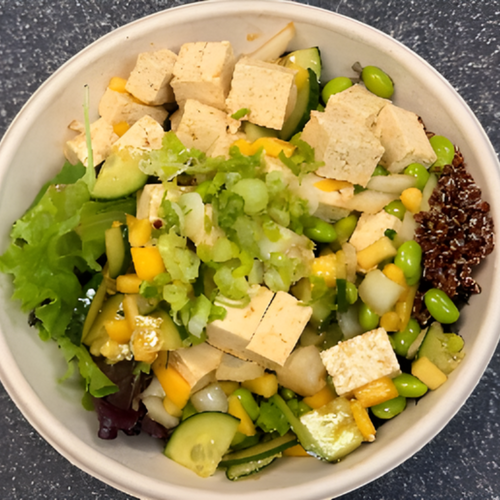 Quinoa, sweet onion, cucumber, mango, spring mix, edamame, hijiki, sesame shoyu
