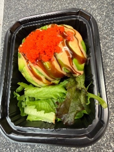 Crab, shrimp, mango, crunch, wrapped with avocado, servedwith spice mayo and tobiko.