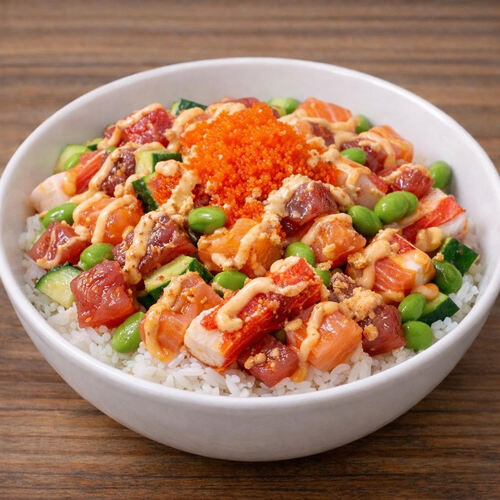 tuna, salmon, krab meat, edamame, cucumber, tobiko, sesame shoyu spicy mayo