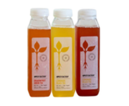 Roots Rice with spinach, 2x roasted sweet potatoes, red onions, goat cheese, pita chips, and dried cranberries. Lemon Tahini dressing and a splash of red wine vinegar. (Optional: Add a Grilled Item)