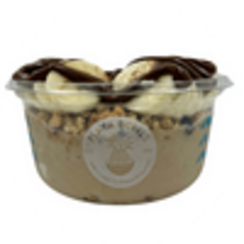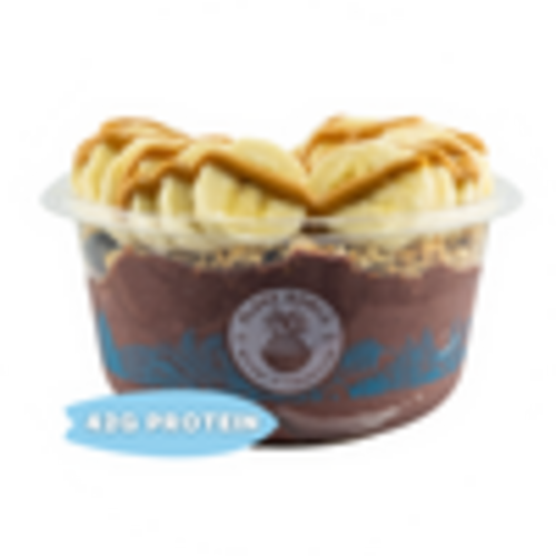 Steel cut oatmeal with chocolate protein topped with banana and peanut butter