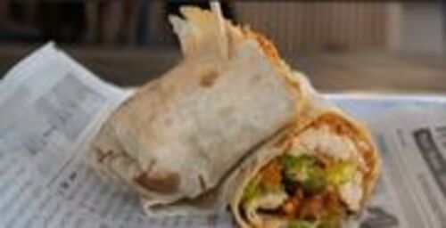 Lettuce, Turkey Bacon, Hot Honey Sauce wrapped in a soft tortilla shell with your choice of heat level.