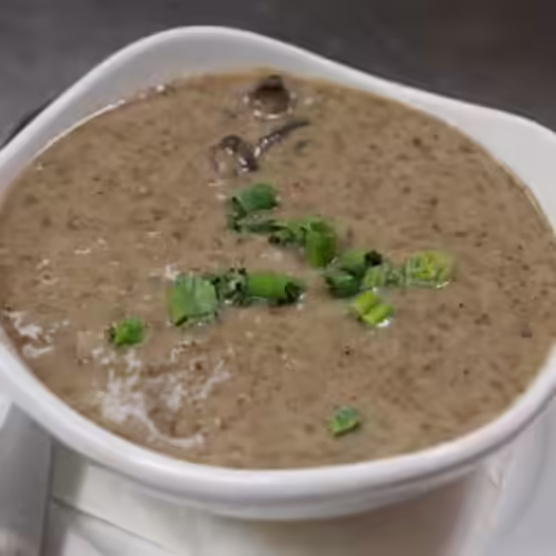 Portobello, crimini, and white button mushrooms, cream, sherry, chives