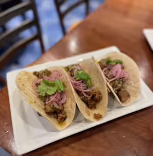 Slow-cooked lamb, smoked tomatillo salsa, pickled red onions, cilantro
