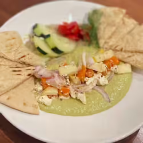 Carrot and celery sticks, warm house-made pita
