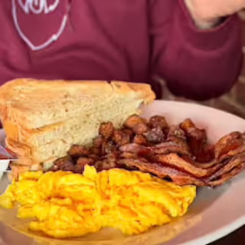 Two any style eggs, choice of brunch meat, choice of toast, home fries (sorry, no add-ons or modifications)
