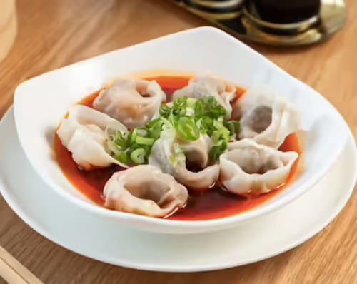 Delicate dumplings filled with seasoned pork and savory broth, featuring a hint of Szechuan spice. (6 pieces)