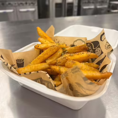 Crispy golden fries tossed in smoked paprika, parmesan, and fresh herbs. Bold, addictive, and finished with our signature underground seasoning.