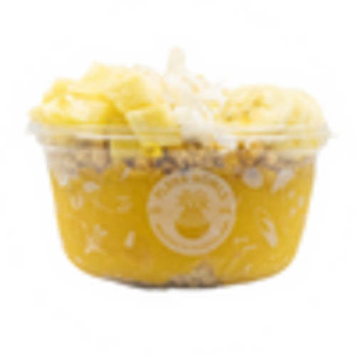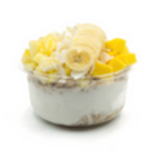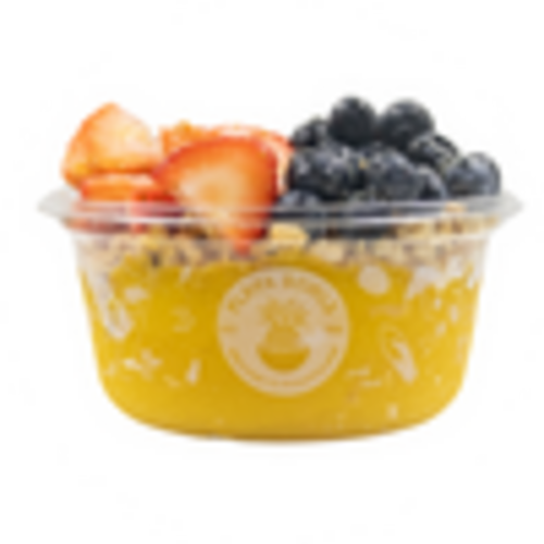 Playa Mango topped with blueberry flax granola, pineapple, banana, coconut flakes and honey