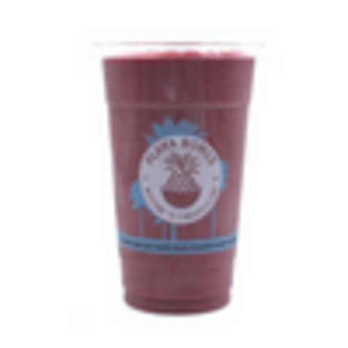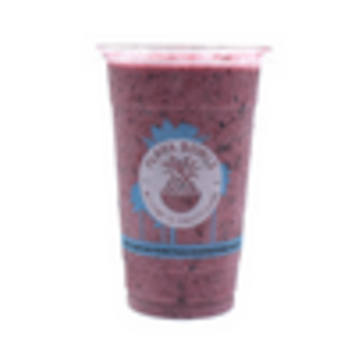 Playa Coconut blend (contains coconut, and banana) topped with blueberry flax granola, strawberry, blueberry, and honey