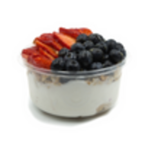 Playa Mango topped with blueberry flax granola, strawberry, banana and Nutella®