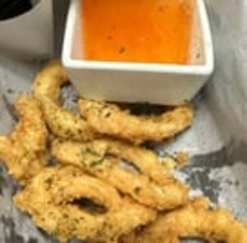 Lightly breaded calamari, sweet n' sour dip.