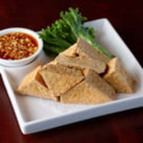 Vegetarian. Firm tofu, roasted peanut, sweet n' sour dip.