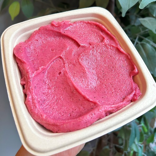 ON TOP: Banana, Blueberry, Strawberry, Chia Pudding (Nut Free) BLEND: Organic Dragon Fruit, Banana, Strawberry, Coconut Water