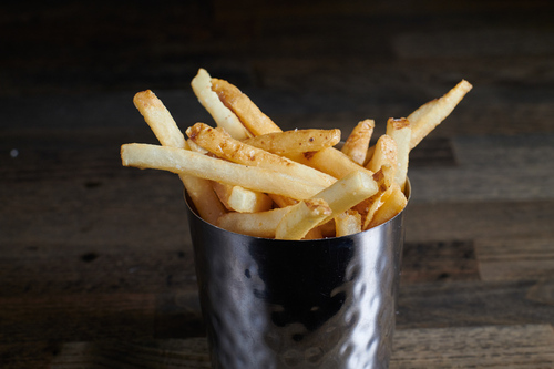 French fries tossed in a chimichurri sauce and parmesan cheese