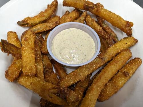 Cornmeal-fried calamari. Choice of: Harvest Moon classic (BBQ & pico de gallo) | Italian (bruschetta & marinara) or tossed house made buffalo sauce with crumble blue cheese