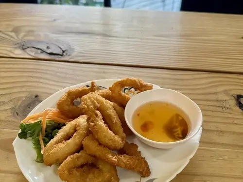 Crispy fried squid with Thai sweet sauce.