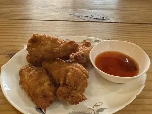 Deep fried wings with Thai chicken sauce.