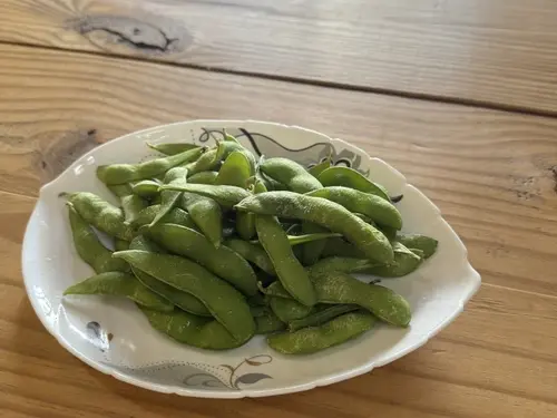 Steamed soybeans with salt.