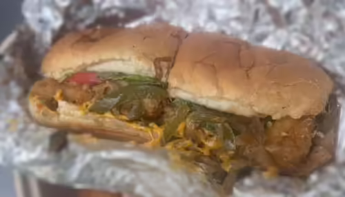 Sauteed veggies over grits or potatoes topped w/ melted cheddar