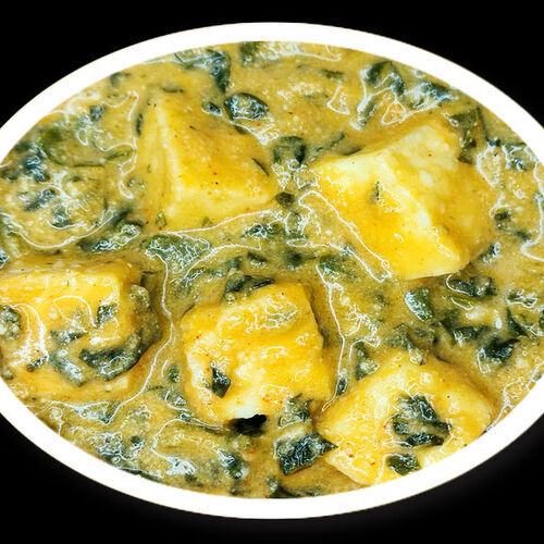 Paneer (Cottage cheese) cooked in a creamy cashew-based spinach gravy with aromatic spices.