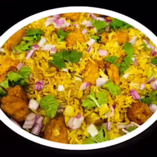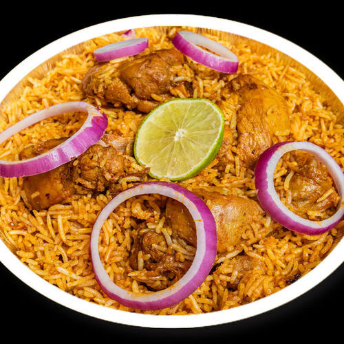 Tender pieces of bone-in chicken layered with Basmati rice, cooked together with caramelized onions, tomatoes, and spices.