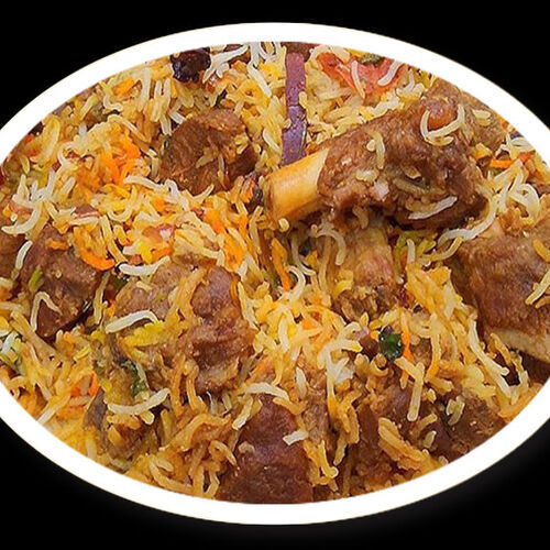 Tender pieces of bone-in goat meat layered with Basmati rice, cooked together with caramelized onions, tomatoes, and spices.
