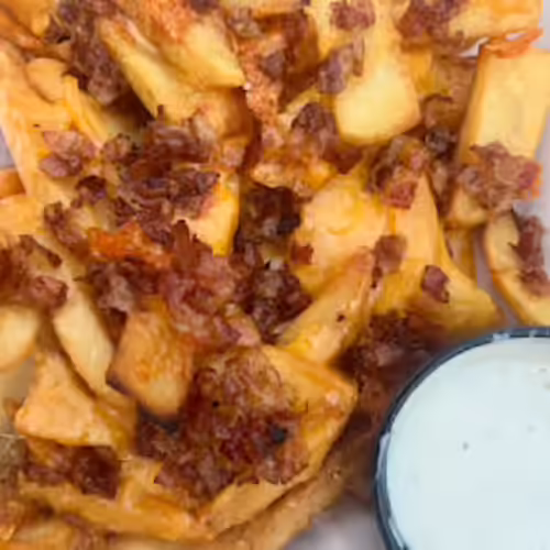 Steak fries with melted cheddar Jack cheese and side of ranch