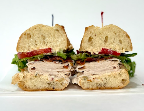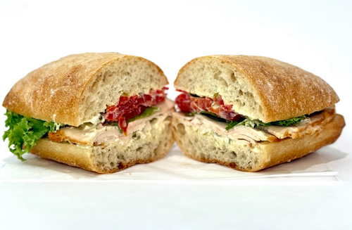 Baguette, Smoked Turkey, Bacon, Boursin Cheese, Lettuce, Tomato