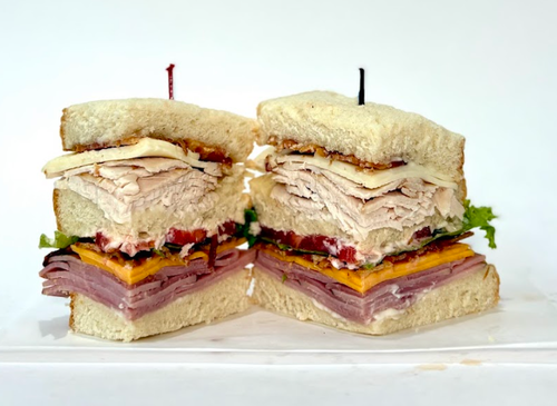 Toasted Bread, Smoked Turkey, Honey Ham, Bacon, Swiss, Cheddar, Lettuce, Tomato, Mayo